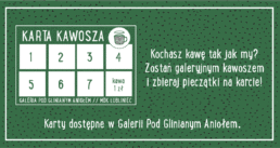 Jeśli kochasz kawę tak jak my, zostań galeryjnym kawoszem i zbieraj pieczątki na karcie. Karty dostępne w Galerii pod Glinianym Aniołem.