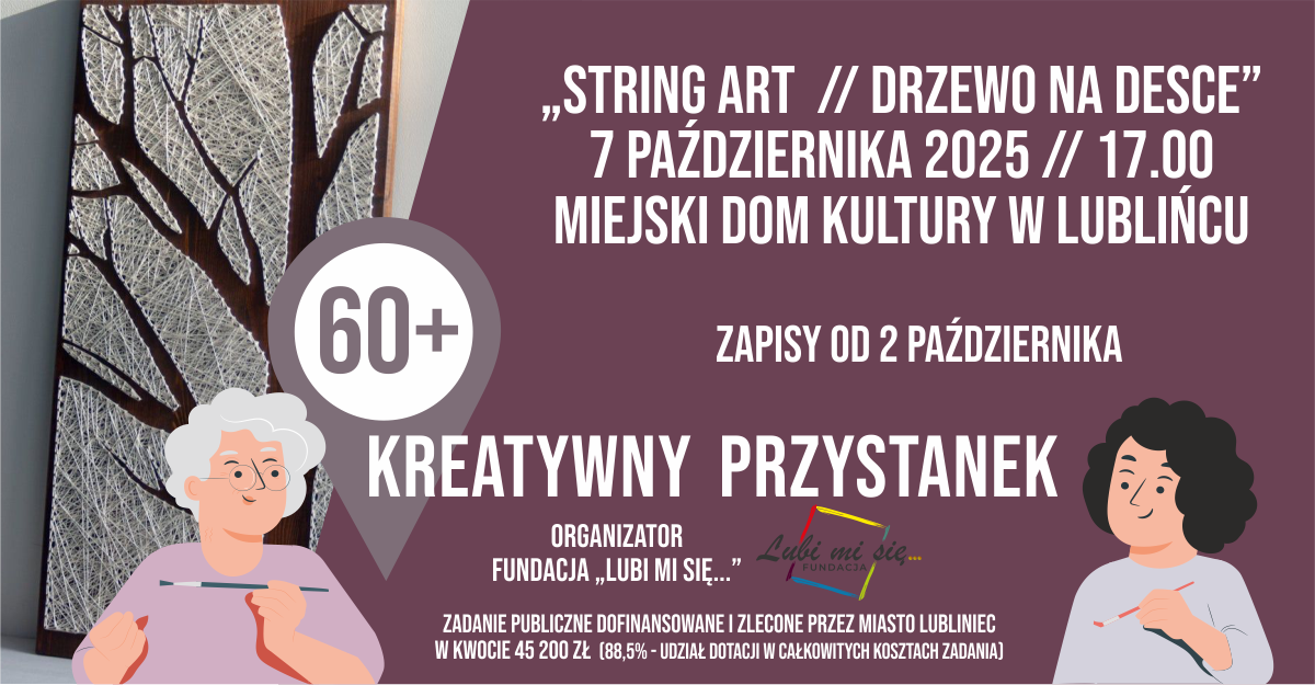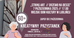 Twórcze spotkanie pod hasłem ,,String Art // Drzewo na desce” odbędzie się w terminie 7 października 2025 roku o godzinie 17:00 w Miejskim Domu Kultury w Lublińcu.