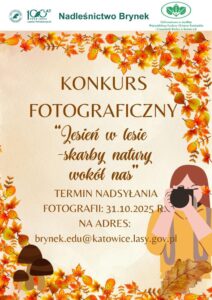 Państwowe Gospodarstwo Leśne, Lasy Państwowe i Nadleśnictwo Brynek serdecznie zapraszają do udziału w konkursie fotograficznym pt. „Jesień w lesie – skarby natury wokół nas”, organizowanym w ramach jesiennej akcji edukacyjnej.