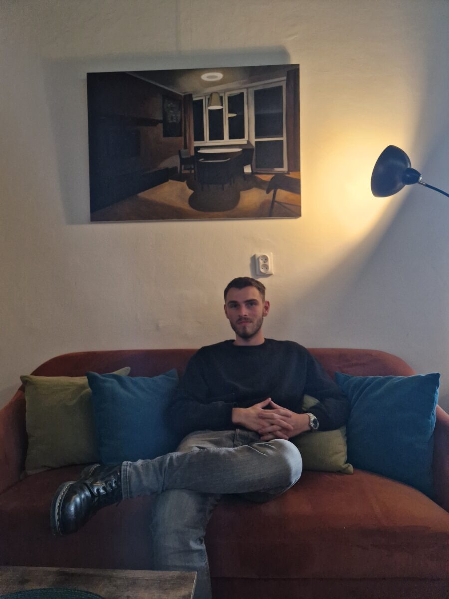 30 września na ścianach Galerii pod Glinianym Aniołem zawisły obrazy młodego artysty Kajetana Bronisławskiego. To 23 letni artysta z Katowic, student V roku malarstwa na katowickim ASP. Zajmuje się głównie malarstwem, rzeźbą, grafiką warsztatową i komputerową. Jego twórczość jest inspirowana przede wszystkim miastem i życiem w mieście. Stara się wyłapywać najciekawsze fragmenty otaczającej go codziennej rzeczywistości. Kontemplując nad obrazami artysty w Galerii pod Glinianym Aniołem można napić się pysznych, jesiennych herbat sezonowych, które dostępne są w dwóch kompozycjach smakowych: wiśnia i kwiat czarnego bzu oraz brzoskwiniowo-cytrusowa.