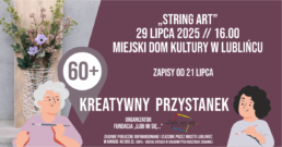 Twórcze spotkanie pod hasłem ,,String Art” odbędzie się w terminie 29 lipca 2025 roku o godzinie 16:00 w Miejskim Domu Kultury w Lublińcu.