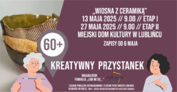 Twórcze spotkania pod hasłem ,,Wiosna z ceramiką” poprowadzi Aleksandra Wipler. Odbędą się one w terminie: Etap I – 13 maja o godzinie 9:00 oraz Etap II – 27 maja o godzinie 9:00.