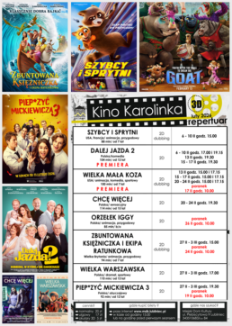 Kolejną animacją graną premierowo jest „Wielka mała koza”, która łączy elementy komedii, sportowych emocji i wzruszającej historii o spełnianiu marzeń. To opowieść o determinacji, wierze w siebie i sile przyjaźni. Na seanse zapraszamy w dniach 13 lutego o godzinie 15:00 i 17:15, 15-17 lutego o godzinie 15:00 i 17:15, 20-24 lutego o godzinie 15:00 i 17:15 oraz 17 lutego o godzinie 10:00.