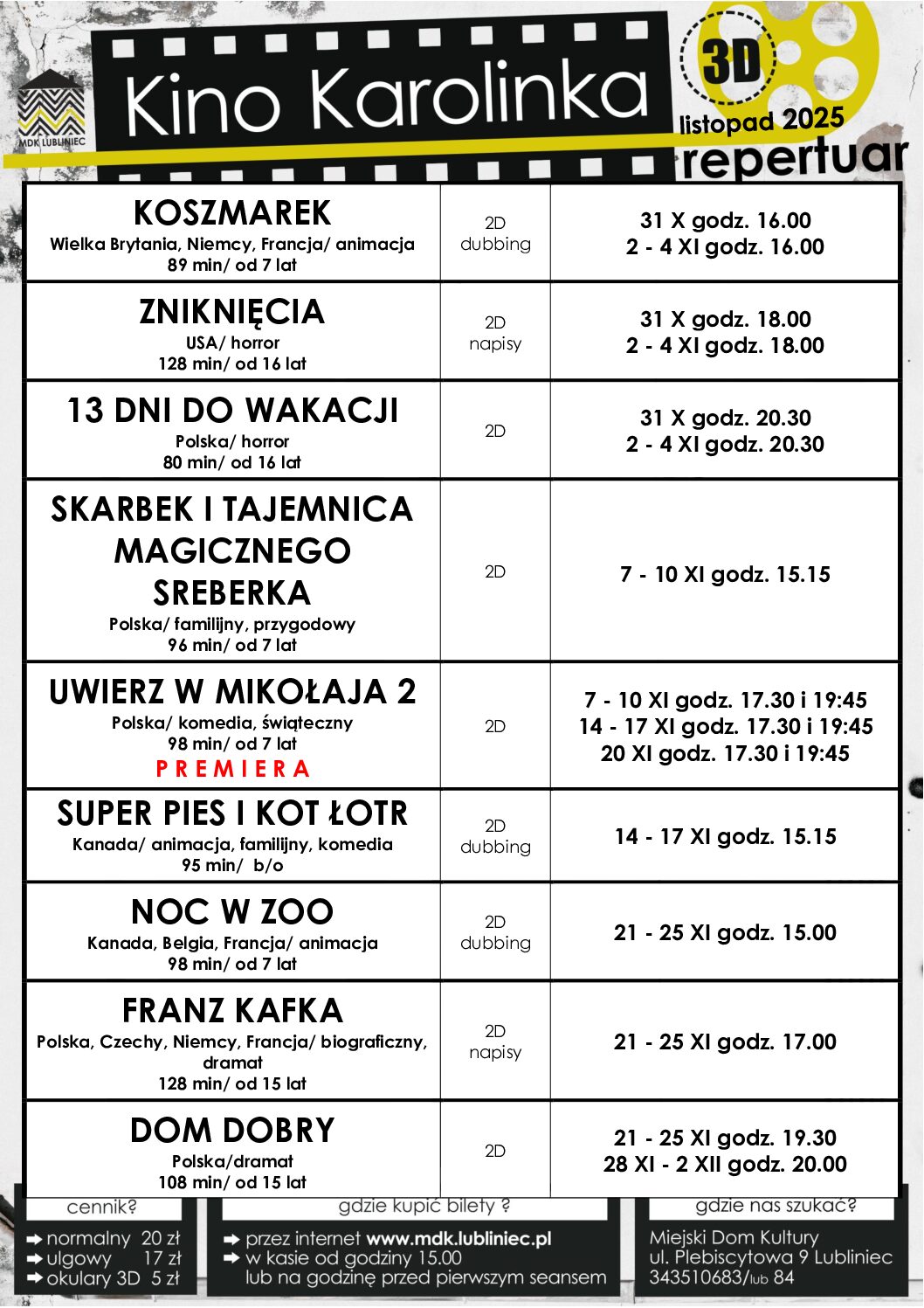 02listopadCały dzień04„KOSZMAREK” ( 2D dubbing )