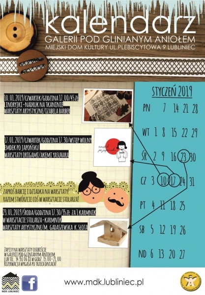 – 10.01.2019 godz.17:00 "Linoryjki – nadruk na tkaninie", koszt 45 zł