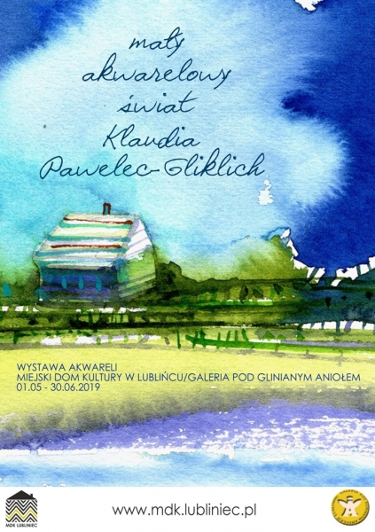 Burmistrz Miasta Lublińca oraz Miejski Dom Kultury w Lublińcu zapraszają na wystawę prac akwarelowych Klaudii Pawelec-Gliklich pt. „Mały akwarelowy świat”. Prace artystki będzie można oglądać w dniach 01.05.2019 – 30.06.2019 roku w Galerii pod Glinianym Aniołem.