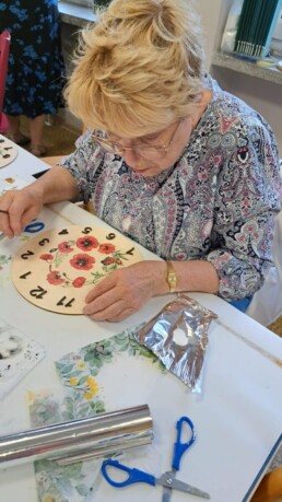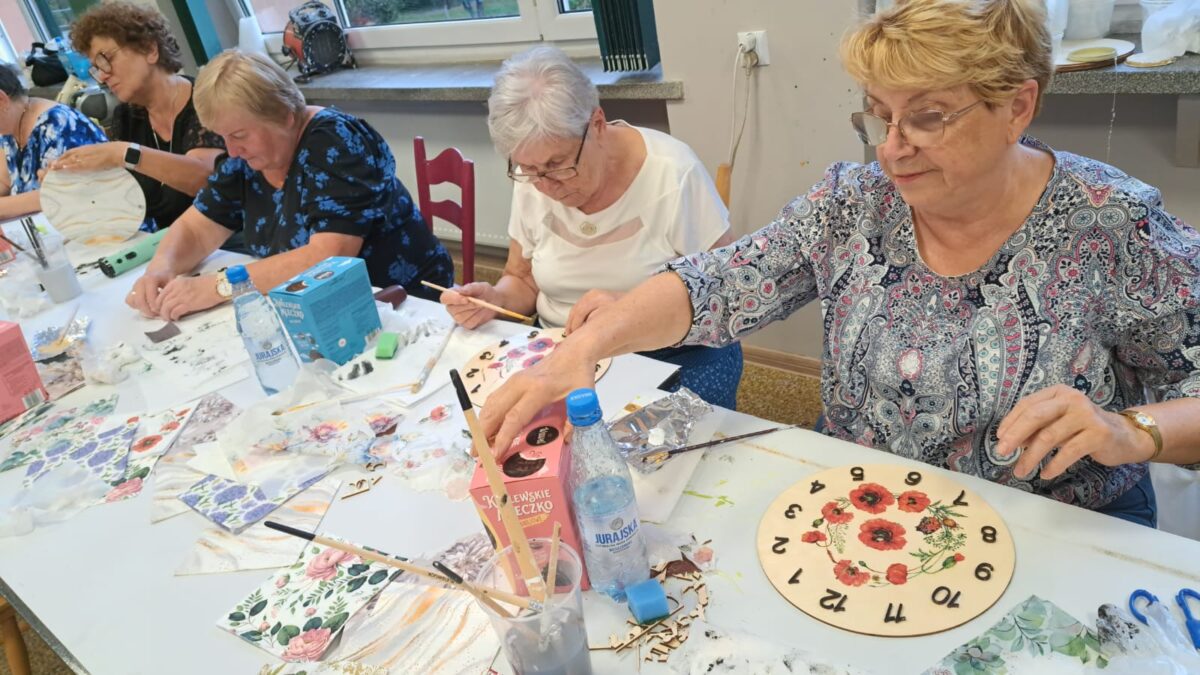 Fotorelacja z warsztatów Kreatywny Przystanek 60+ ,,Zegar decoupage”